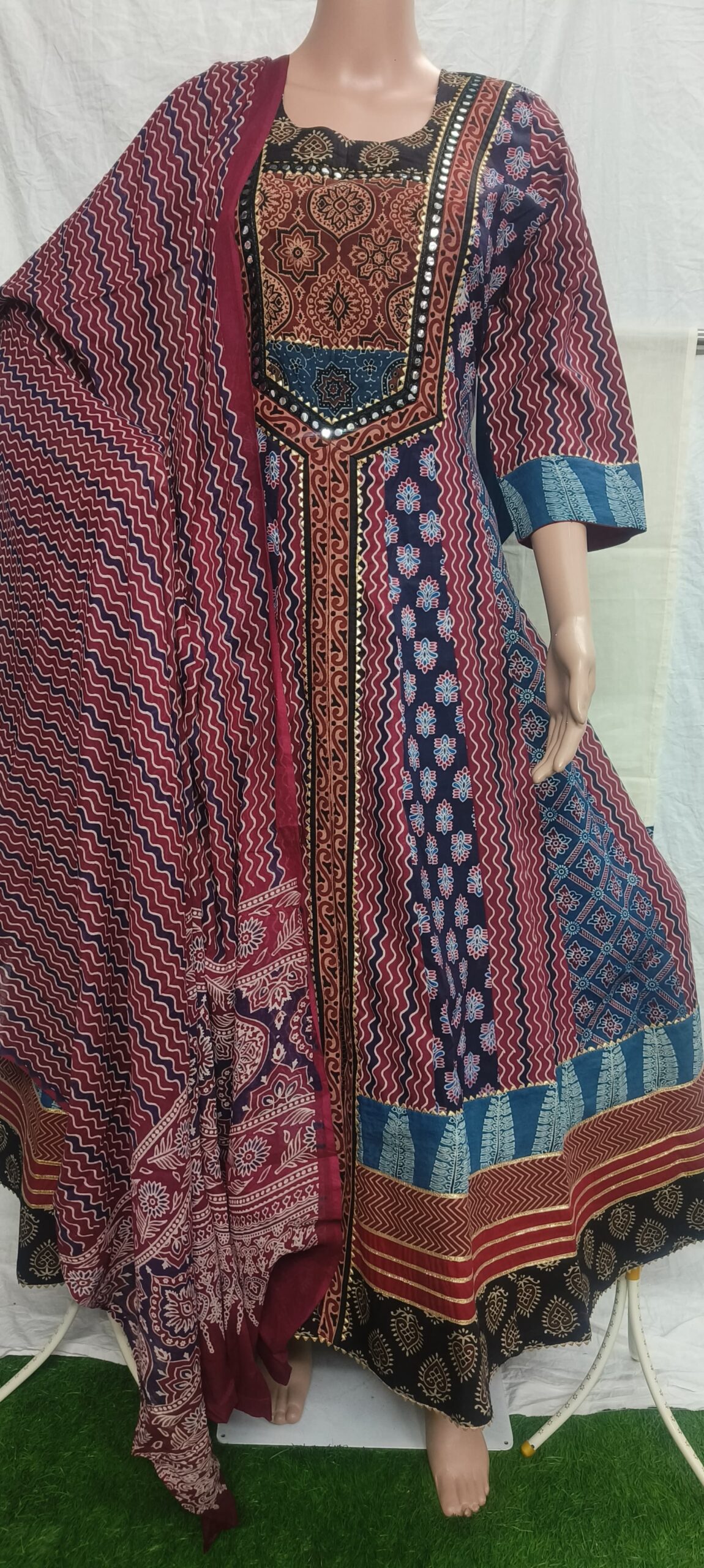 Ajrak cotton kurti in deep maroon hues